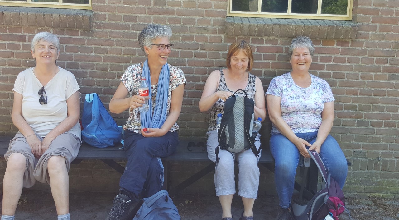 Dit landgoed ligt ten noorden van Steenwijk. Prachtig landgoed dat voor het grootste deel eigendom is van de familie Karnebeek. Verzameltijd 10.30 uur ‘Residence Eese’, Eerlijkheid gebied mij te zeggen, dat ik hierbij een chique horeca gelegenheid had voorgesteld. Maar het bleek een vakantiepark met overigens heerlijke koffie en een gezellig restaurant. De kaartlezer van deze wandeling was Jan Boersma, samen met Eppie Plat had hij de wandeling bedacht. De groep 11 personen, 2 mannen en 9 vrouwen. We waren gewaarschuwd door Jan om genoeg drinken mee te nemen, het zou namelijk een warme, wolkeloze dag worden. Dat werd het. Doordat we veel door het bos liepen was het best te doen. Prachtige gevarieerde wandeling. Bos, heide, vennen met katoengras, grafheuvels, holle paden en nog veel meer schitterend, afwisselend landschap. Onderweg passeerden we “Huis De Eese’, en de boerderij met het koetshuis van het landgoed. Kletsend en genietend van de omgeving, met hier en daar een rustmoment hadden we een fijne dag. Het was wel even bikkelen op het laatst, de zogenaamde laatste loodjes. Na een hele dag wandelen in de warmte smaakte het drankje achteraf des te lekkerder. Een aantal bleef eten op het terras van de ‘Residence’.