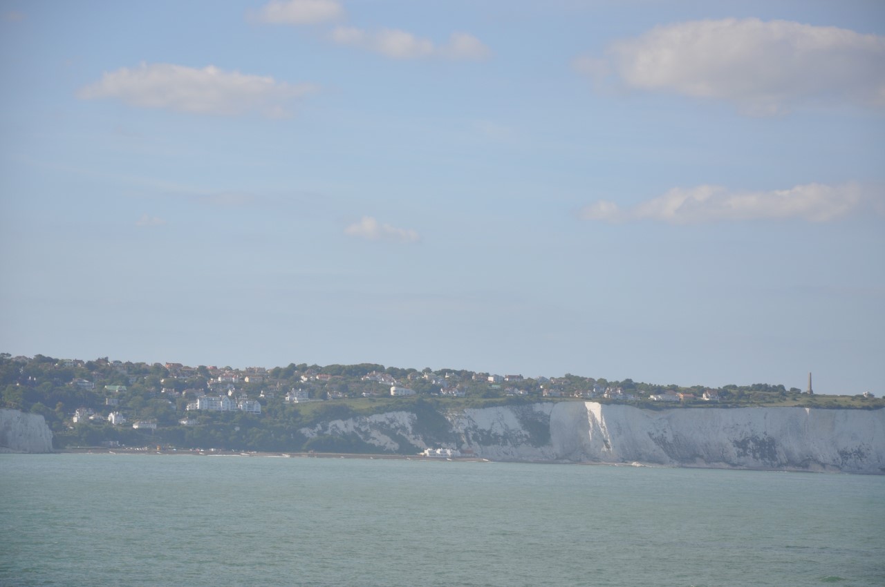 Vanaf vertrek konden we met open dak rijden. Heerlijk is dat. De overtocht naar Dover verliep gesmeerd. Vermakelijk was het, dat we telkens de kofferbak moesten open maken bij de douane. Alsof er verstekelingen in zaten. De aankomst in Dover was prachtig met zon en krijtrotsen.  Maar dan begint het!! ‘Drive Left’ staat er op de borden. Dat gaat op zich nog wel, maar dan komen de eerste rotondes (roundabout) . ‘That’s a different koek’,  om op z’n  Louis van Gaals te zeggen. Waar komen alle auto’s nu vandaan?  Zonder kleerscheuren, maar wel met een enorme omweg dwars door Canterbury, bereikten we onze B&B voor de eerste nacht.