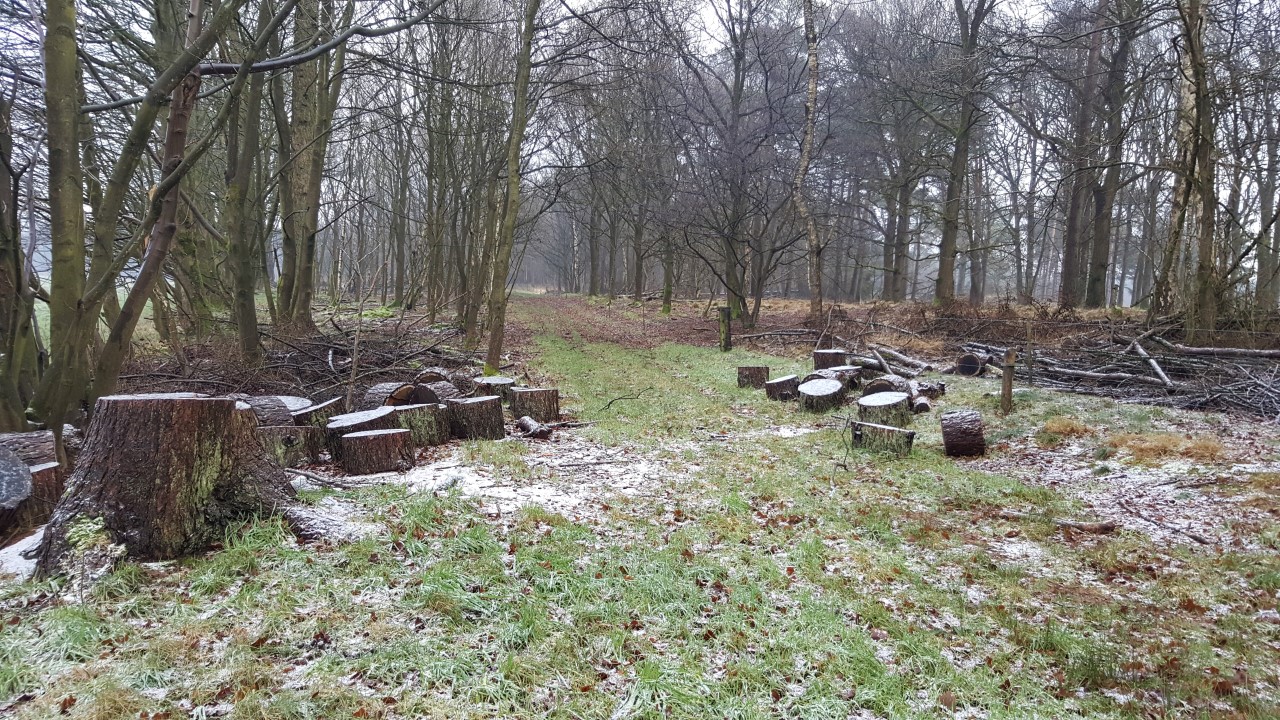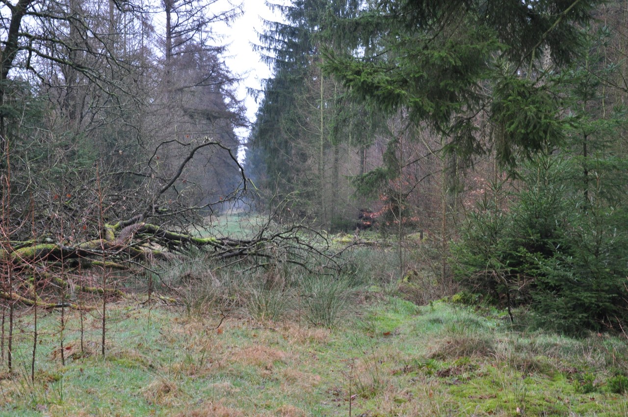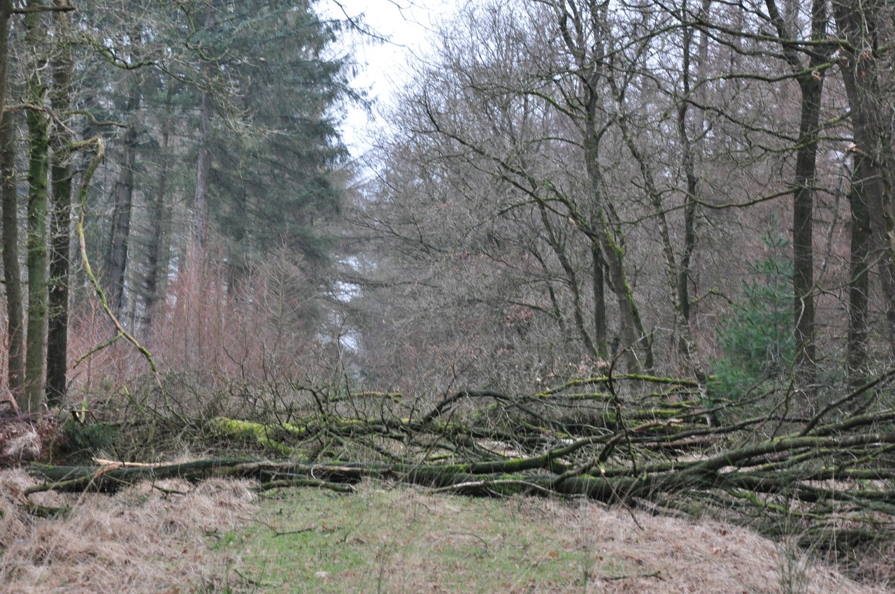 Al een langere tijd heb ik een concept route vanaf Hooghalen over het Heuvingerzand langs Kamp Westerbork en dan via het Grote Zand weer terug. Bennie had andere plannen en daarom besloot ik om alleen op pad te gaan en een gedeelte te lopen vanaf de P van kamp Westerbork. Het werd een survival tocht. Veel omgevallen bomen en het was erg nat. Dat leverde een behoorlijke kletspoot op en klimmen en klauteren over bomen om dan tot de conclusie te komen dat het verderop nog erger was, waardoor ik weer terug moest klauterend en klimmend over boomstammen.