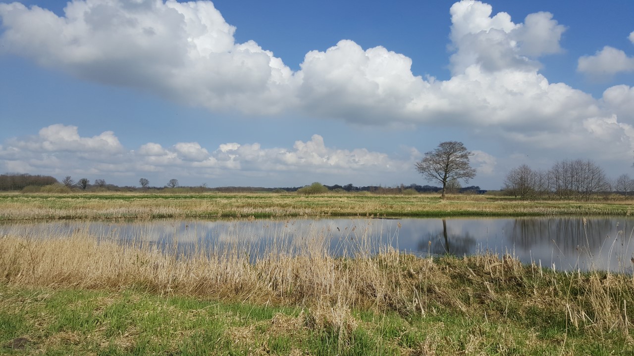 Dat inspireerde om meer van deze omgeving te verkennen. In Augustus 2016  zijn we op zoek gegaan naar een camping voor het seizoen 2017.  In de buurt van Steenwijkerwold vonden we een mooie camping met een prachtig uitzicht over de landerijen.  Camping Natuurdomein ‘de Landerije’.  Deze keer reserveerden we voor het hele seizoen. Nu hebben we iets langer de tijd en geen druk om ieder weekeind naar de camping te moeten.  Zaterdag,  nadat de regen voorbij was,  hebben we onze caravan geplaatst. Zondag was het een prachtige zonnige dag en hebben we een rondje gewandeld, waarbij we een klein stukje door de Weerribben hebben gelopen. In Januari hadden we ook al een zondag erg fijn gewandeld vanuit Steenwijkerwold richting Paasloo. Daar heb ik gelijk een route van gemaakt voor de website, een verrassende leuke wandeling.