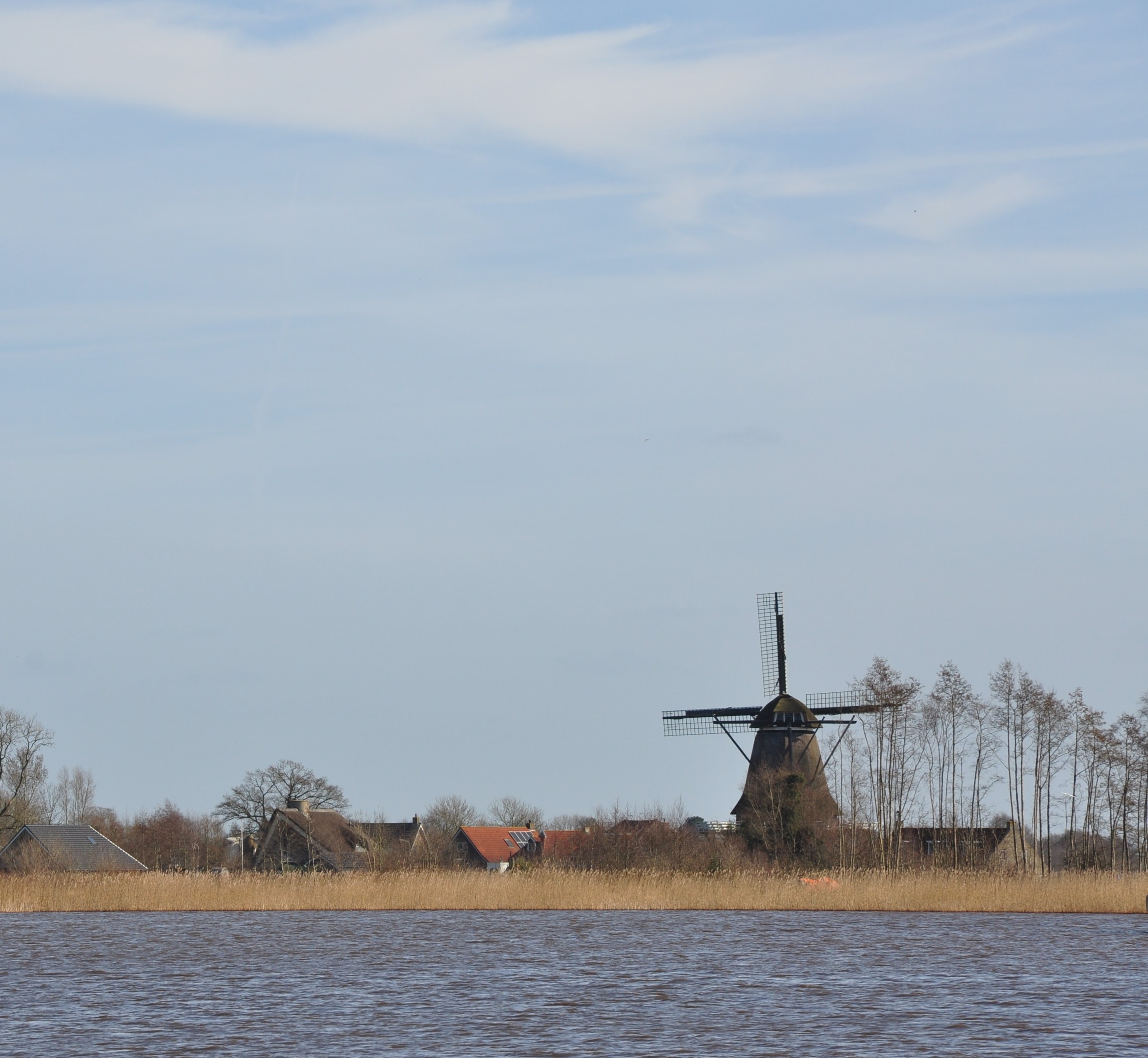 Ondanks dat de pontjes nog niet in de vaart waren en zelfs de bruggen waren weggehaald voor onderhoud hebben we  genoten van het heerlijke lentegevoel.  Kletsend over van alles en nog wat bereikten we Langweer. De Langweerder Molen werd fanatiek van alle kanten vastgelegd op de foto.