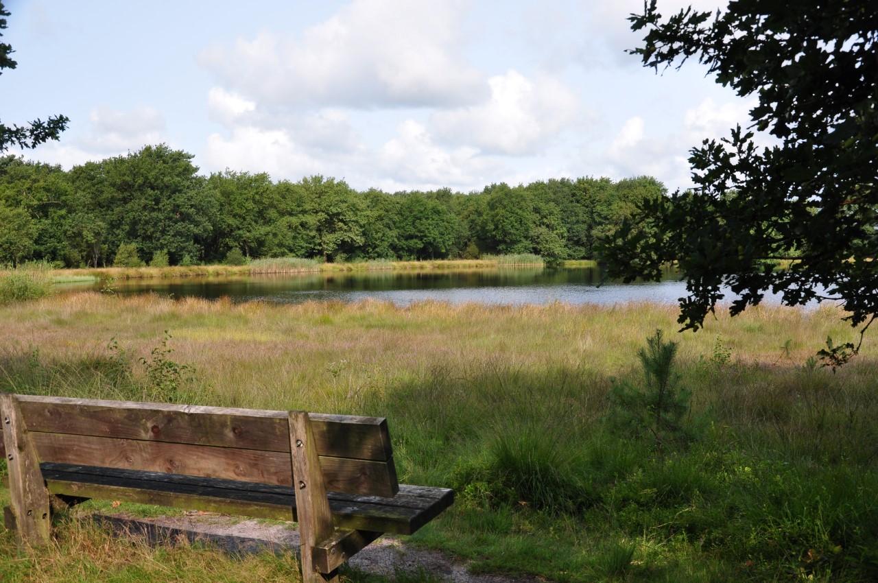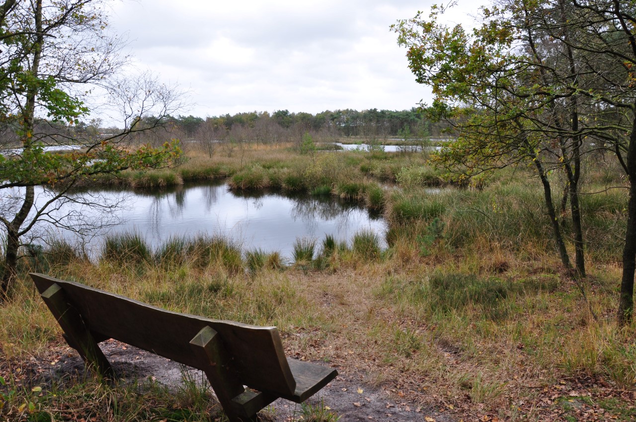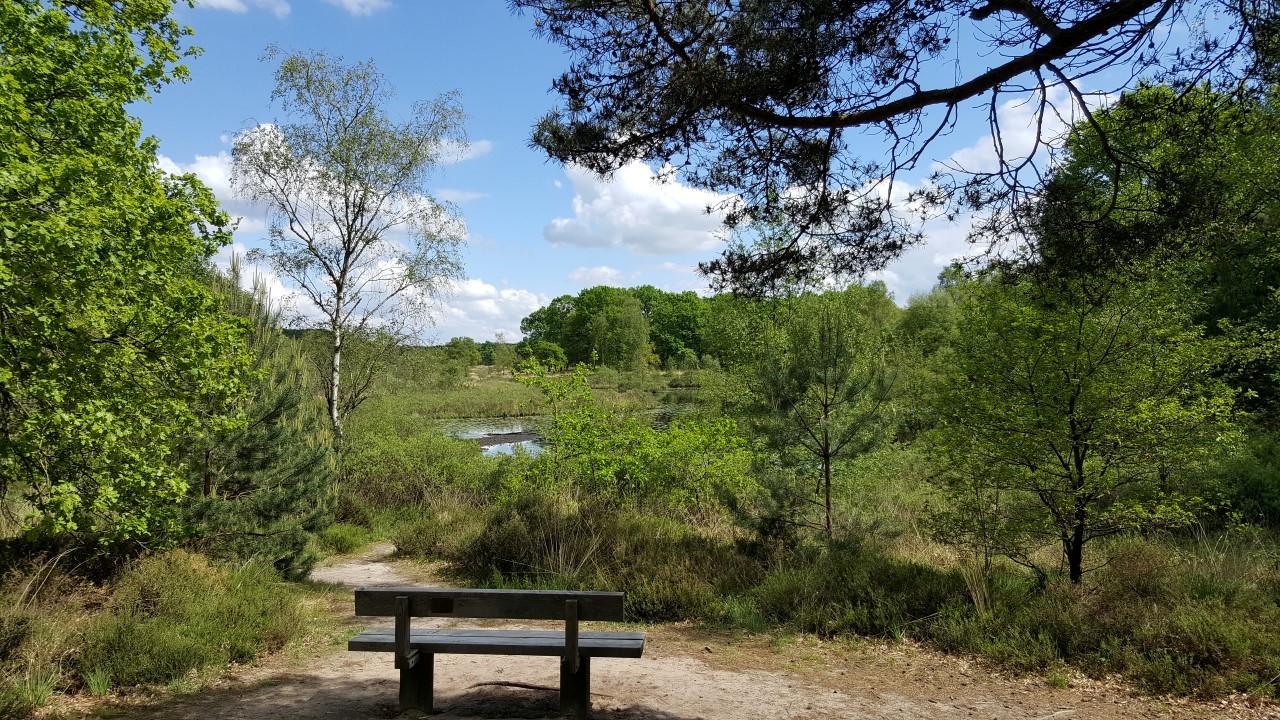 Tijdens het wandelen kom je ze overal tegen: Wandelbankjes!  Meestal net op tijd om de vermoeide beentjes rust te gunnen. Relaxen met je gezicht in de zon om zo de meegebrachte lunch te nuttigen. Vaak staan ze op mooie plekjes, met uitkijk over een ven of de heide. Sommige bankjes zijn net kleine kunstobjecten en soms is het de locatie, die het bankje uniek maakt. Wanneer ik vanuit huis even een ommetje maak, zit ik steevast op mijn favoriete stekje bij Kampsheide. Beetje mijmeren en nadenken. Hierover schreef ik al eerder een blog: