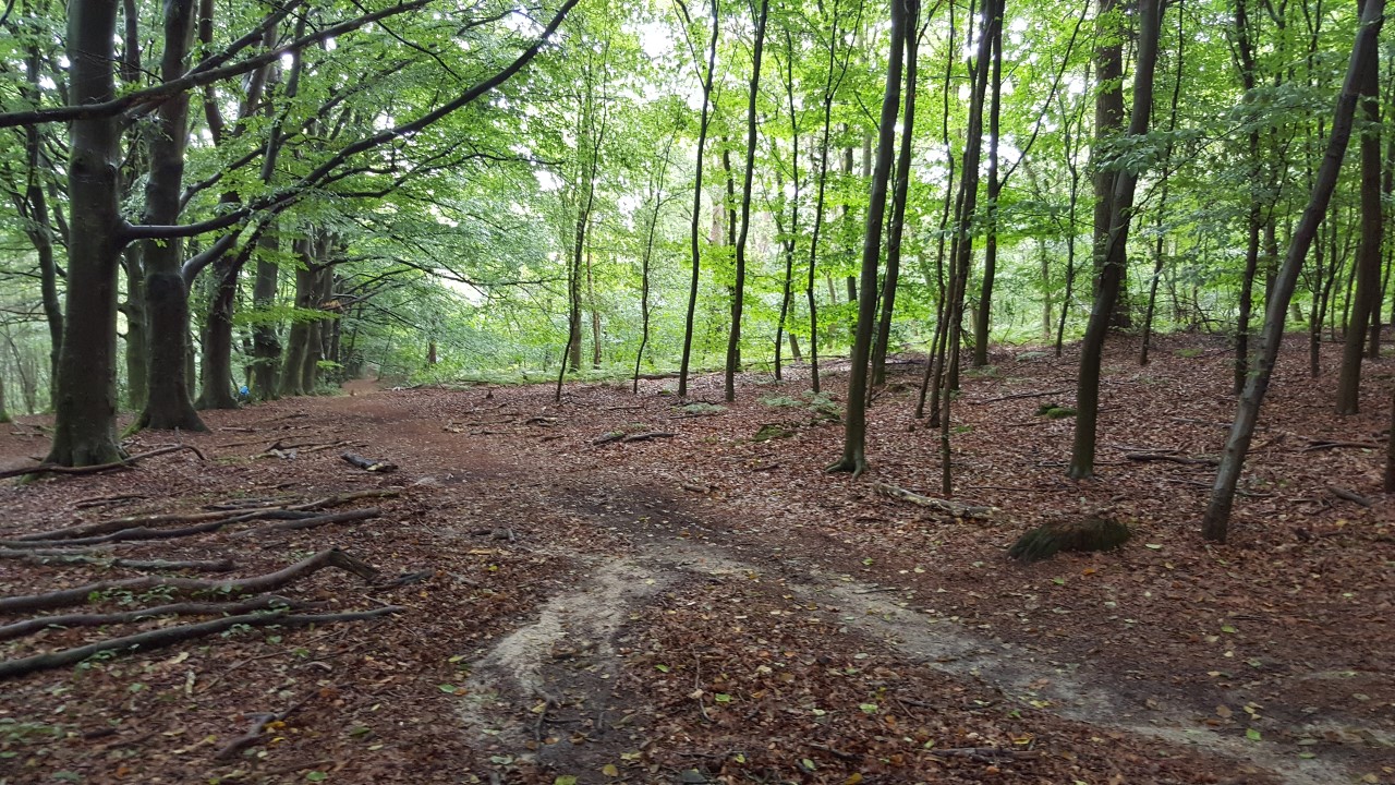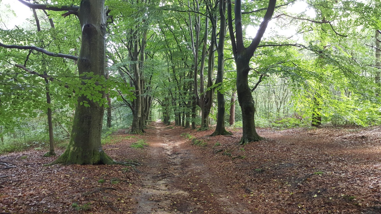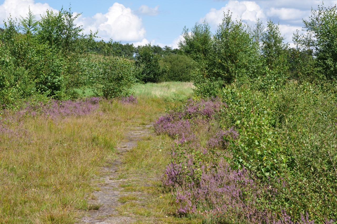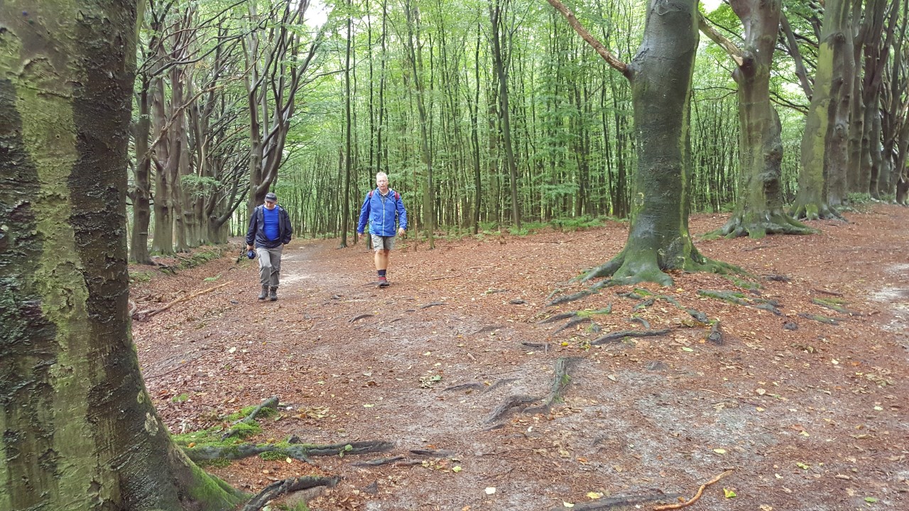 Hij had een combinatie bedacht van de bestaande blauwe en paarse wandelroutes. Nadat we het eerste paarse pijltje hadden gevonden, gingen we op pad met 7 dappere wandelaars. Het bleef wat miezerig in het begin en we moesten zelfs schuilen voor echte regen, maar het mocht de pret niet drukken. Om het met Cruyff te zeggen:  ‘elk nadeel heb z’n voordeel’,  het was wel prachtig groen in het bos, de heide glom van het verse water en was prachtig paars. We passeerden enkele mooie heidevelden en gingen daarna op pad naar ‘de Woldberg’.  Mooie statige bomen en diepe uitgesleten paden. We maakten een uitstapje naar de klimtoren , die naast de snelweg ligt, 25 meter hoog. Twee mannen durfden de uitdaging wel aan en klommen naar boven.  We passeerden daarna nog een kleine ven en liepen door het bos terug. De wandeling was uiteindelijk 14 KM. Na nog een tosti of een kop soep gingen we allemaal weer voldaan richting eigen huis.